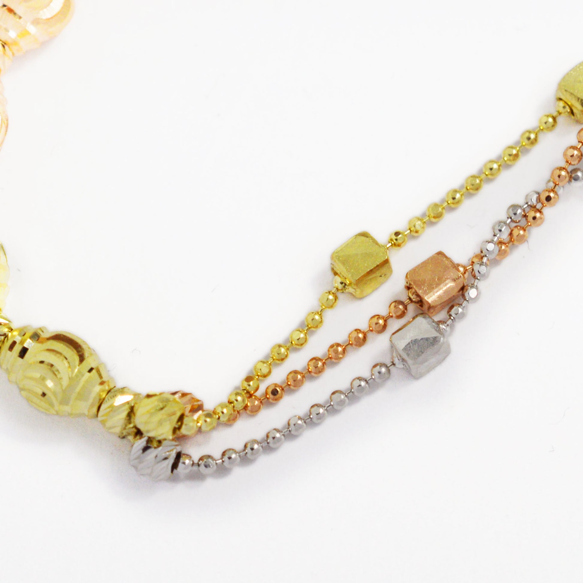 Златна гривна от бяло, жълто и розово злато