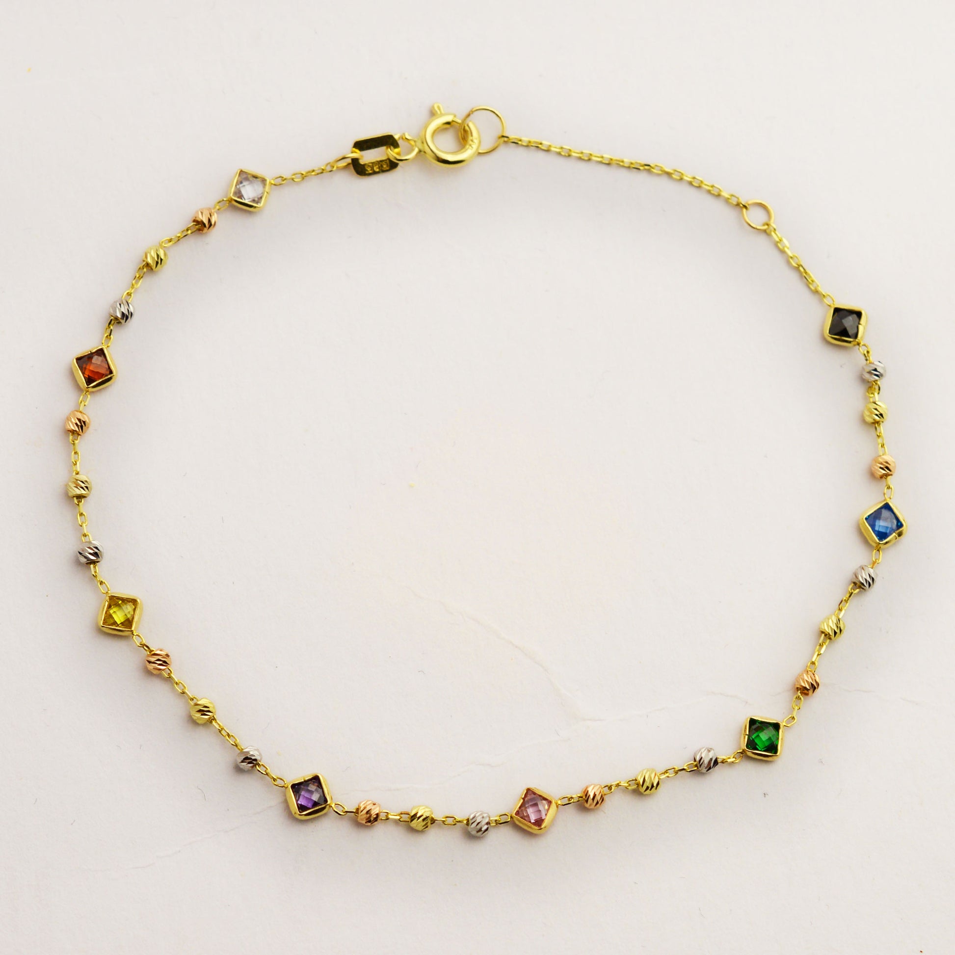 Златна гривна с бяло, жълто и розово злато