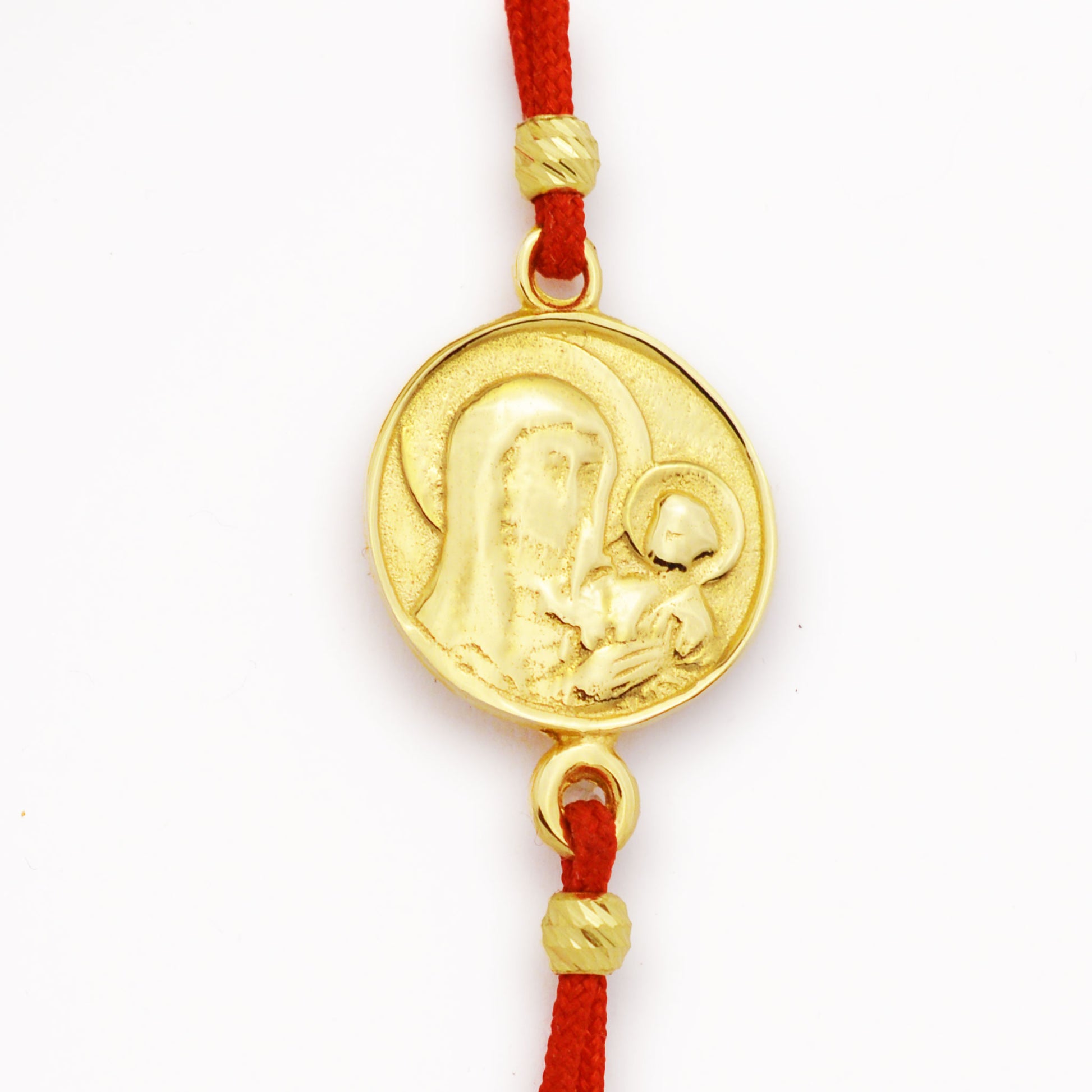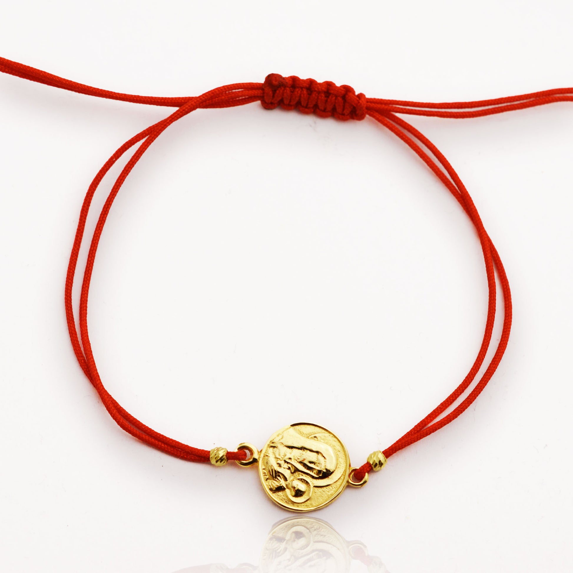 - Гривната с червен конец и златен елемент, украсена с две златни топчета, е изящен и стилен аксесоар, който ще придаде елегантност и класа на всеки тоалет. Цветът на червения конец придава топлина и страст, докато златният елемент предоставя бляскава и изискана нотка.
